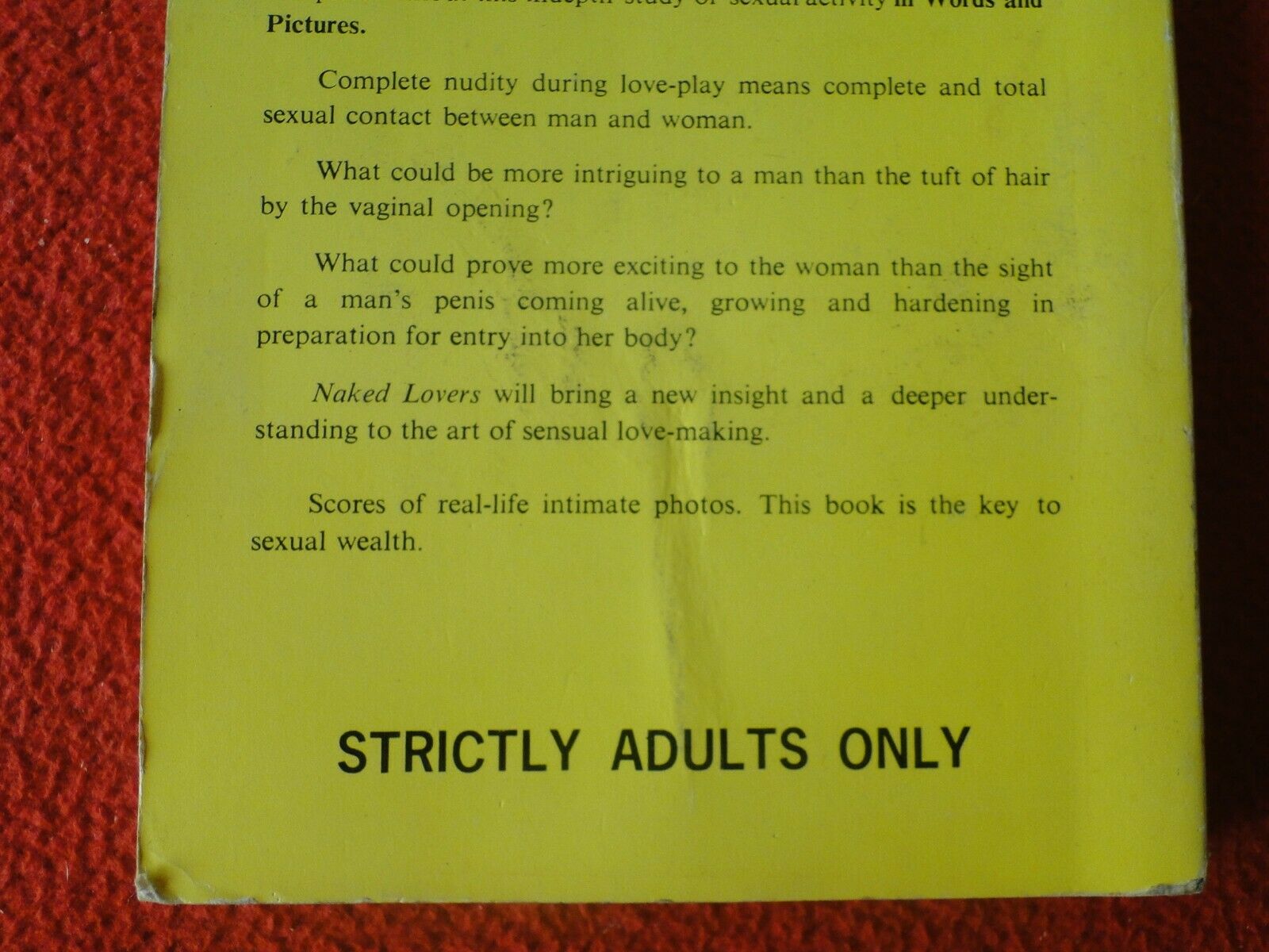 Vintage Sexy Erotic Adult Paperback Book Novel Naked Lovers Illustrated Y. You will receive the novel in the pictures. Please use the pictures to guide your bidding decisions. Please see our other adult paperback novels. Please see our other adult material. Please see our other auctions for rare, unusual, and hard to find items. We will be listing a large amount of adult material over the coming weeks and months. Please put us on your favorites list. We do combine shipping for multiple purchases. Please wait for an invoice prior to payment. We also refund money for excess shipping. Good Luck.