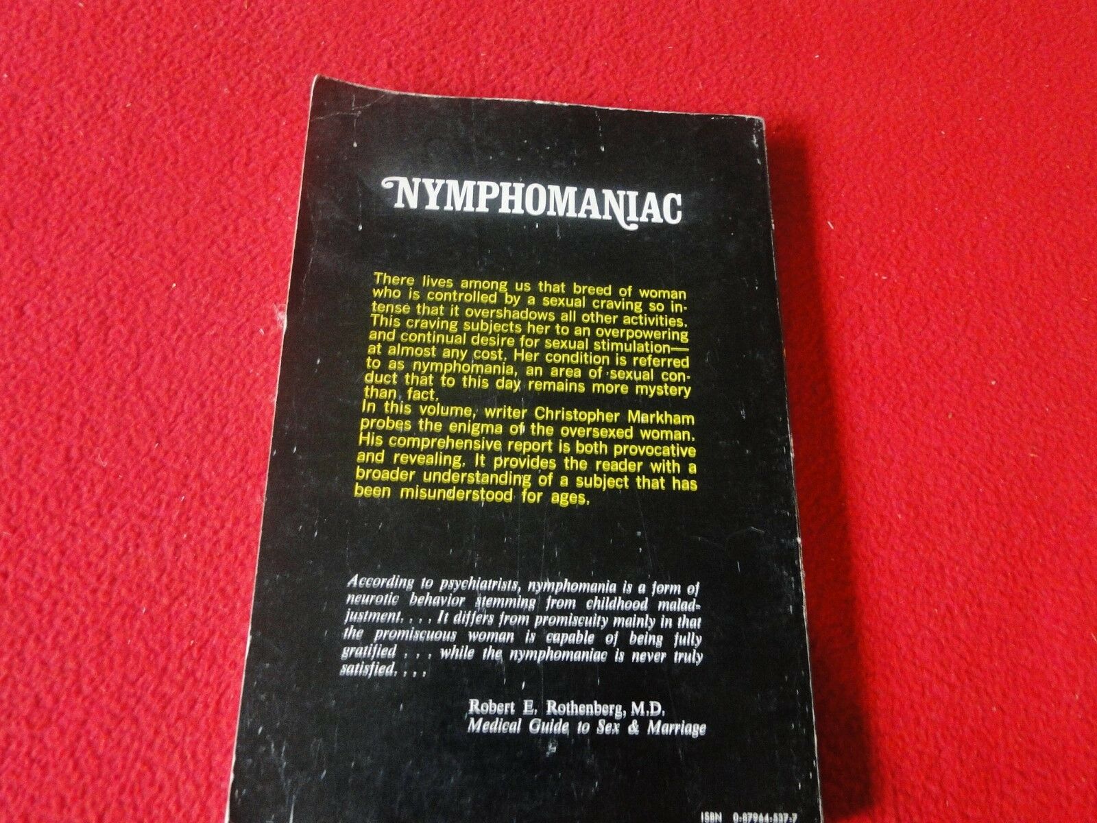 Vintage Sexy Erotic Adult Paperback Book Novel Nymphomaniac Tight Binding Loose Pages 8. You will receive the novel in the pictures. Please use the pictures to guide your bidding decisions. Please see our other adult paperback novels. Please see our other adult material. Please see our other auctions for rare, unusual, and hard to find items. We will be listing a large amount of adult material over the coming weeks and months. Please put us on your favorites list. We do combine shipping for multiple purchases. Please wait for an invoice prior to payment. Good Luck.
