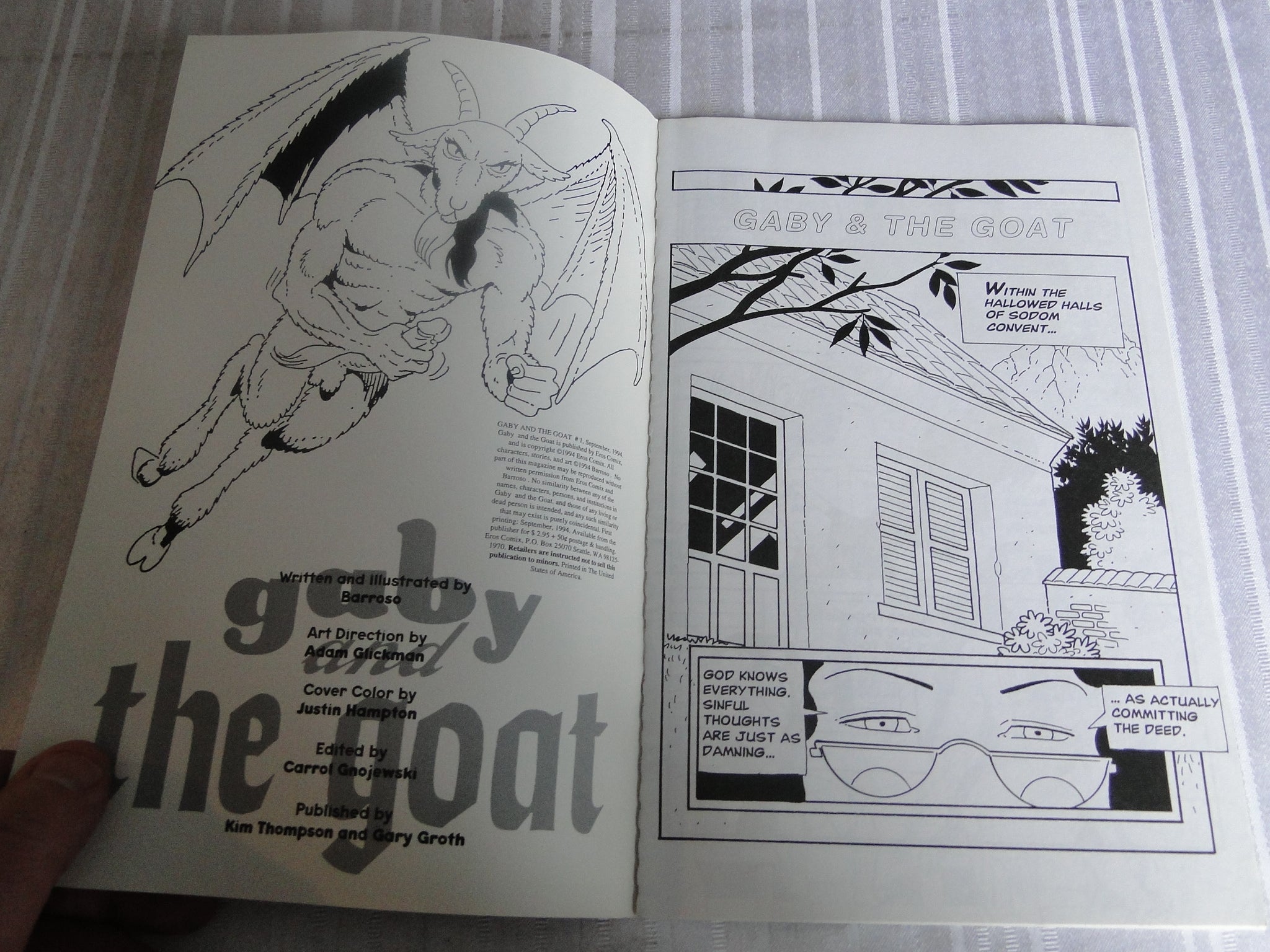 Vintage Nude Erotic Sexy Adult Comic Book Gaby & The Goat #1 Eros Sept. 1994  107        You will receive the magazine in the pictures.  Please use the pictures to guide your bidding decisions.  Please see our other auctions for vintage adult magazines.  Please see our other auctions for vintage adult material.  Please see our other auctions for rare, unusual, and hard to find items.  We will be listing a huge amount of adult material over the coming weeks and months.  Please put us on your favorites list.  We do combine shipping on multiple purchases.  Please wait for an invoice before paying.