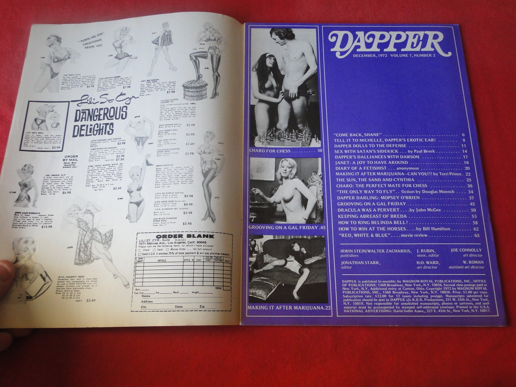 Vintage Nude Erotic Sexy Adult Magazine Dapper December 1972 P6 You will receive the magazine in the pictures. Please use the pictures to guide your bidding decisions. Please see our other auctions for vintage adult magazines. Please see our other auctions for vintage adult material. Please see our other auctions for rare, unusual, and hard to find items. We will be listing a huge amount of adult material over the coming weeks and months. Please put us on your favorites list. We do combine shipping on multiple purchases. Please wait for an invoice before paying.