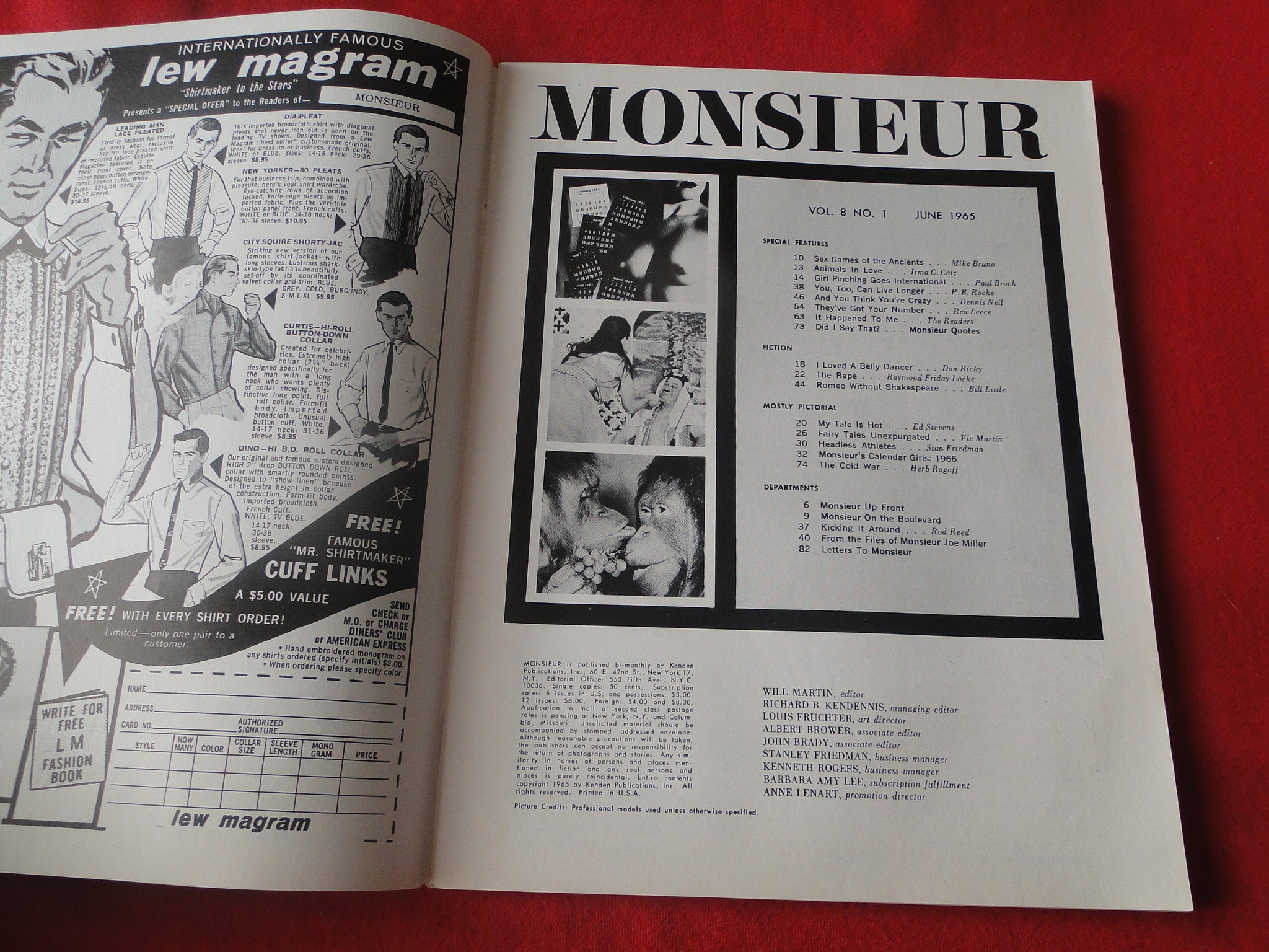 Vintage Nude Erotic Sexy Adult Magazine Monsieur June 1965 JB5 You will receive the magazine in the pictures. Please use the pictures to guide your bidding decisions. Please see our other auctions for vintage adult magazines. Please see our other auctions for vintage adult material. Please see our other auctions for rare, unusual, and hard to find items. We will be listing a huge amount of adult material over the coming weeks and months. Please put us on your favorites list. We do combine shipping on multiple purchases. Please wait for an invoice before paying.