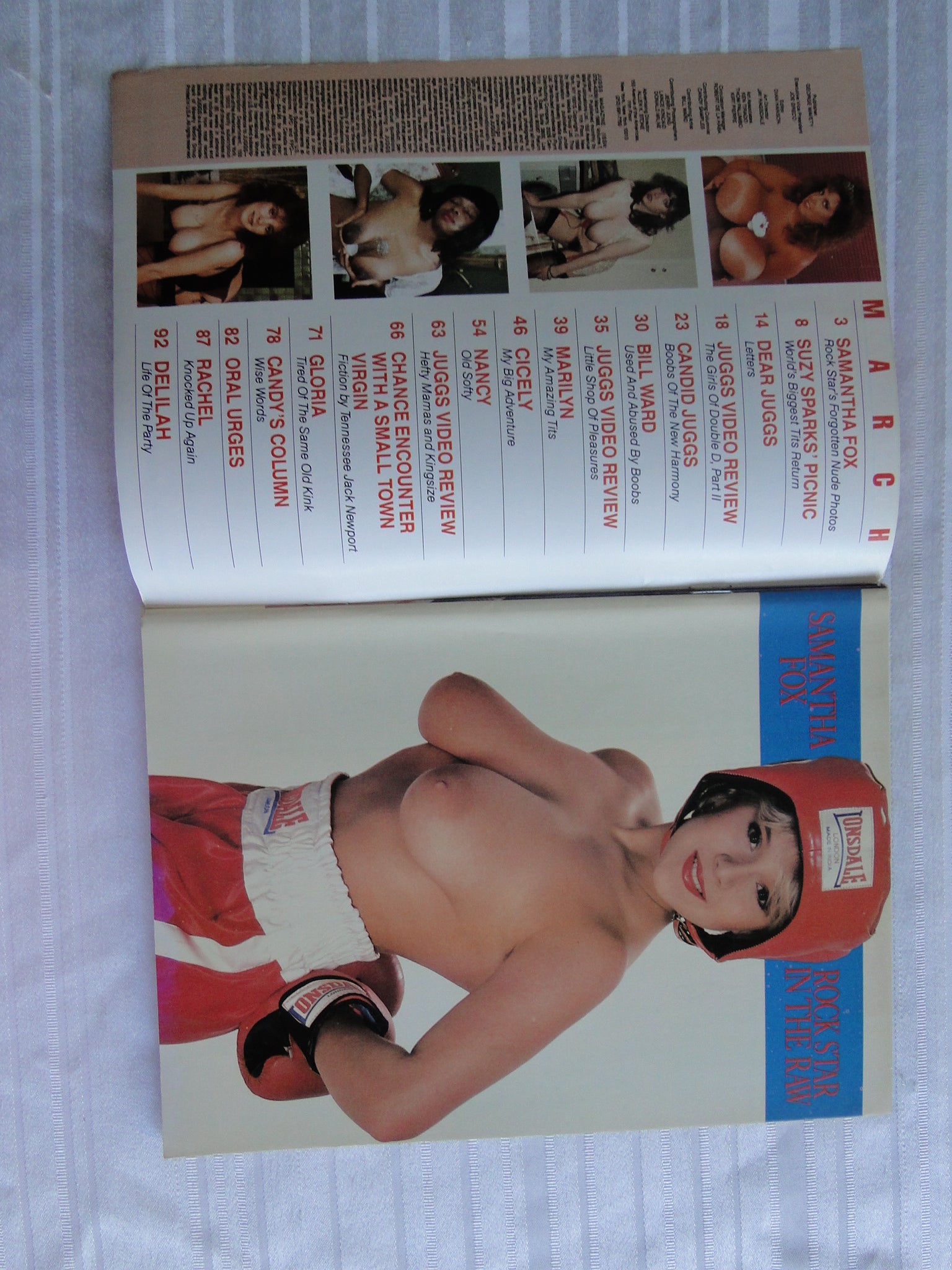 Vintage Nude Erotic Sexy Adult Big Tit Magazine Juggs March 1988 Samantha Fox SK3 You will receive the magazine in the pictures. Please use the pictures to guide your bidding decisions. Please see our other auctions for vintage adult magazines. Please see our other auctions for vintage adult material. Please see our other auctions for rare, unusual, and hard to find items. We will be listing a huge amount of adult material over the coming weeks and months. Please put us on your favorites list. We do combine shipping on multiple purchases. Please wait for an invoice before paying.