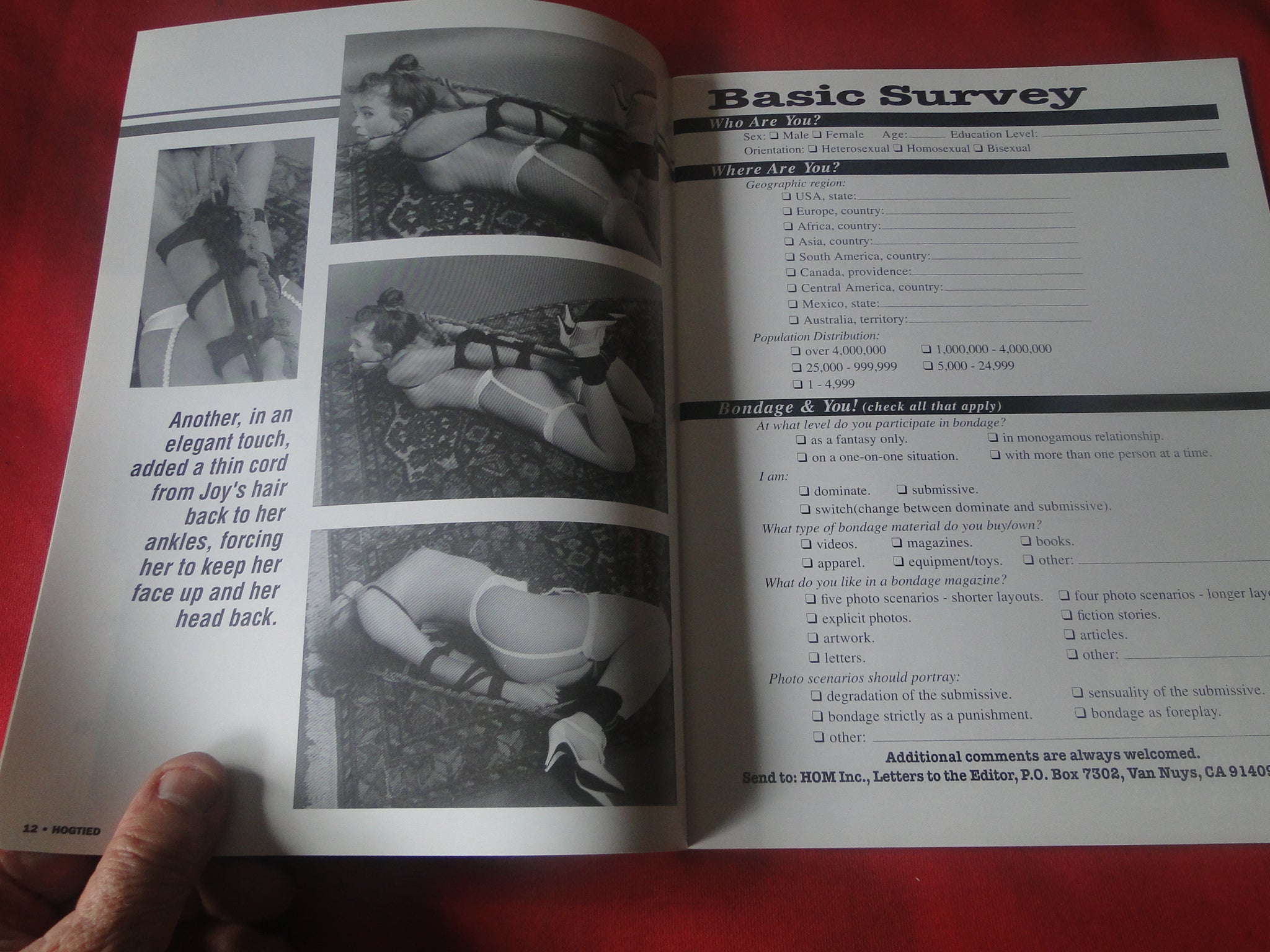 Vintage Nude Erotic Sexy Adult Magazine BDSM Hogtied HOM 1993 JB65 You will receive the magazine in the pictures. Please use the pictures to guide your bidding decisions. Please see our other auctions for vintage adult magazines. Please see our other auctions for vintage adult material. Please see our other auctions for rare, unusual, and hard to find items. We will be listing a huge amount of adult material over the coming weeks and months. Please put us on your favorites list. We do combine shipping on multiple purchases.