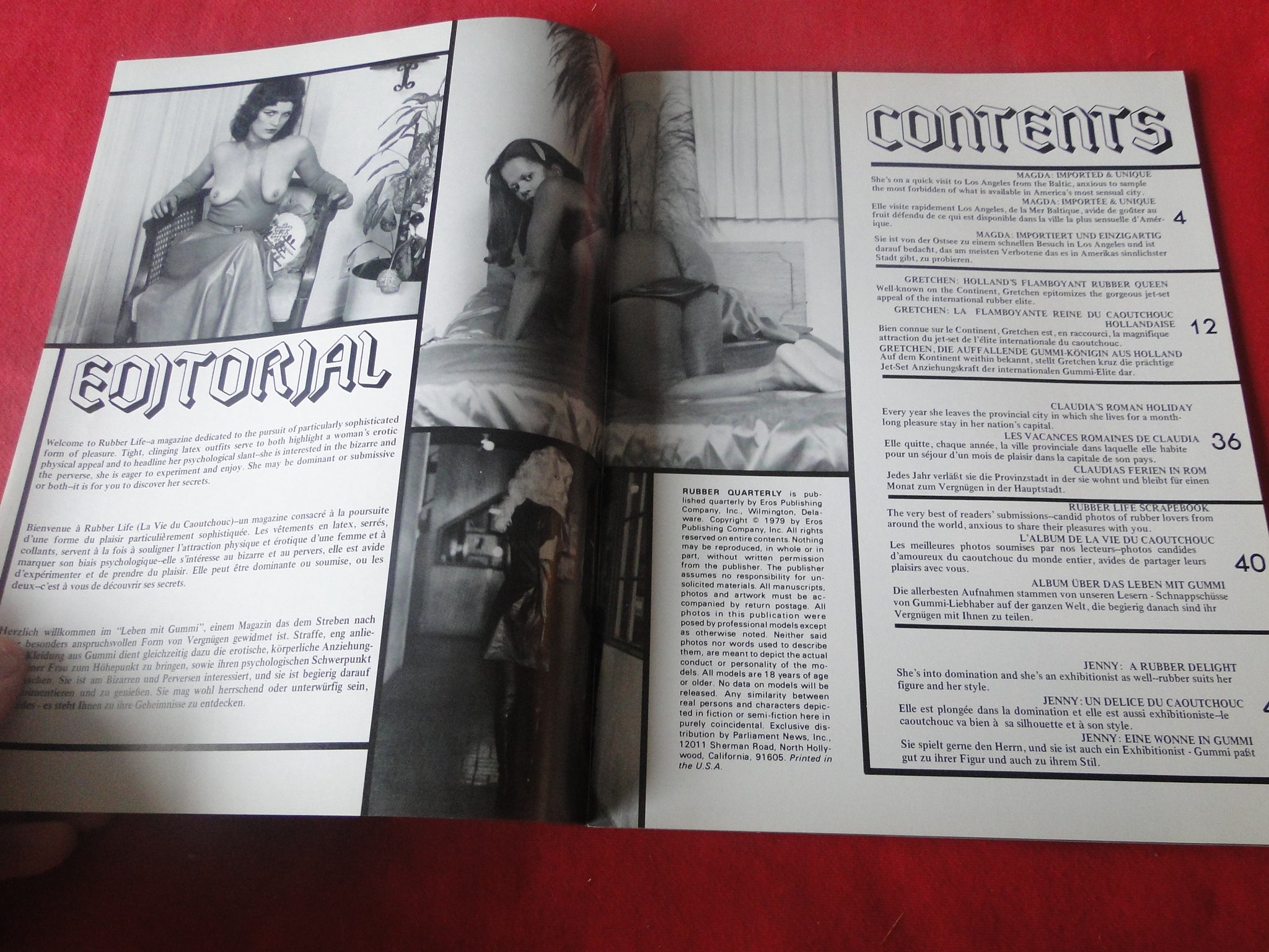 Vintage Nude Erotic Sexy Adult Magazine BDSM Rubber Quarterly International Edition 1979 JB26 You will receive the magazine in the pictures. Please use the pictures to guide your bidding decisions. Please see our other auctions for vintage adult magazines. Please see our other auctions for vintage adult material. Please see our other auctions for rare, unusual, and hard to find items. We will be listing a huge amount of adult material over the coming weeks and months. Please put us on your favorites list. We do combine shipping on multiple purchases. Please wait for an invoice before paying.