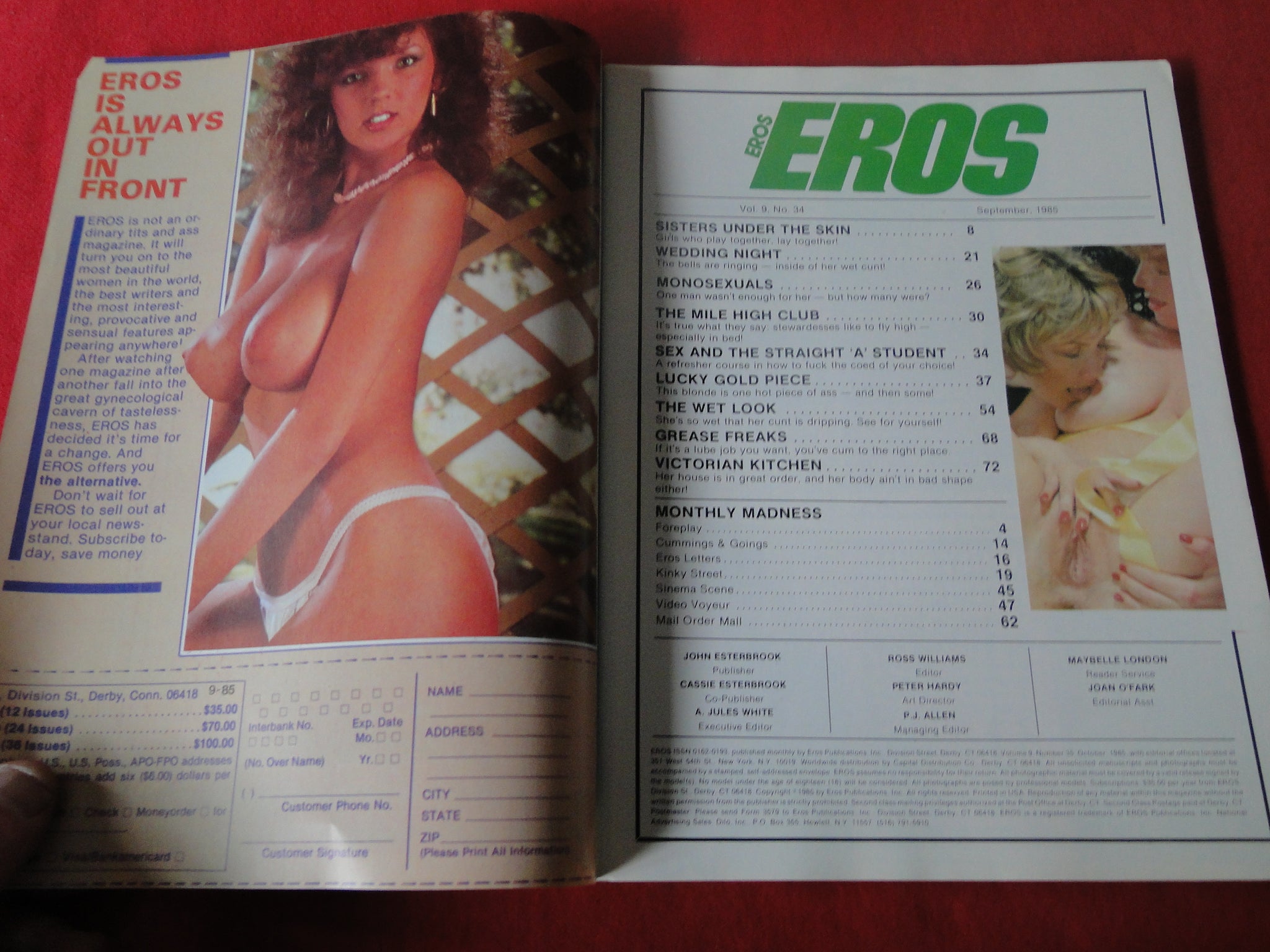 Vintage Nude Erotic Sexy Adult Magazine Eros September 1985 CS You will receive the magazine in the pictures. Please use the pictures to guide your bidding decisions. Please see our other auctions for vintage adult magazines. Please see our other auctions for vintage adult material. Please see our other auctions for rare, unusual, and hard to find items. We will be listing a huge amount of adult material over the coming weeks and months. Please put us on your favorites list. We do combine shipping on multiple purchases. Please wait for an invoice before paying.