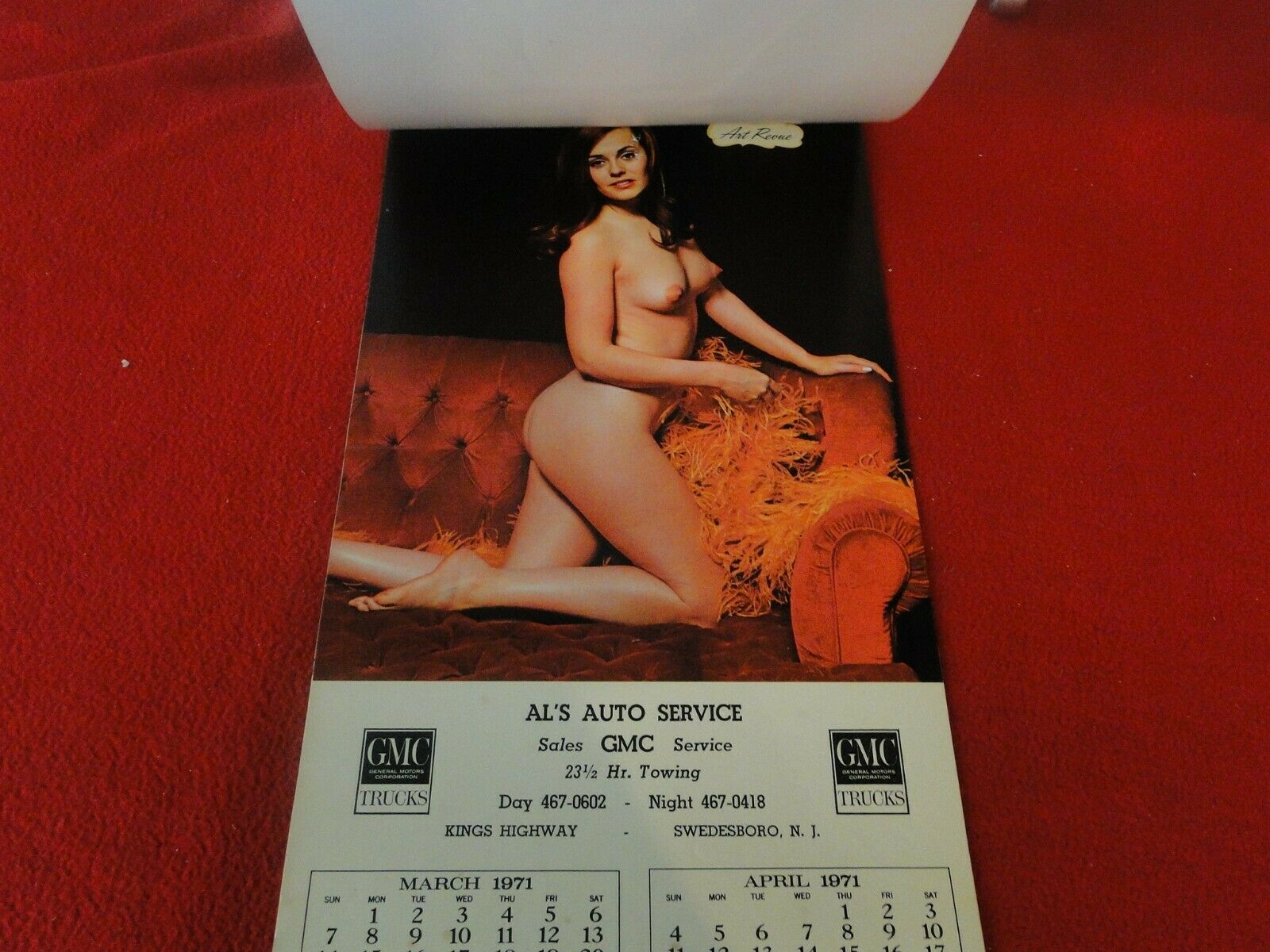 Vintage Semi-Nude Pinup Wall Calendar 1971 Al's Auto Service H. You will receive the calendar in the pictures. Please use the photos to guide your bidding decisions. Please see our other vintage nude and semi nude calendars as we have a huge assortment. Please see our other auctions for rare, unusual, and hard to find items. We combine shipping for multiple purchases. Please wait for an invoice prior to payment. We also refund money for excess shipping. Thanks and Good Luck.