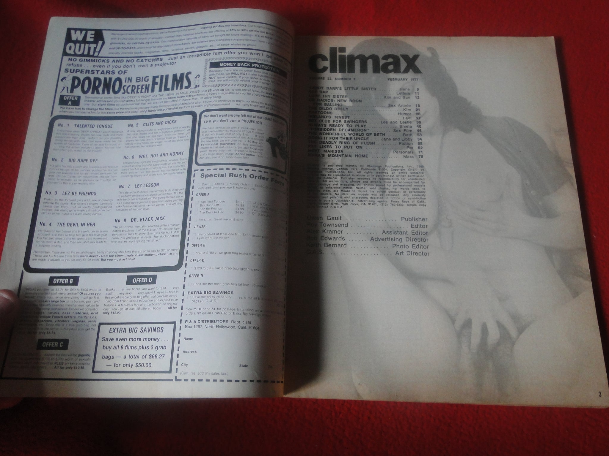 Vintage 18 Y. O. + Sexy Erotic Adult Men's Magazine Climax 1977 P52 You will receive the magazine in the pictures. Please use the pictures to guide your bidding decisions. Please see our other adult magazines, photos and movies. We will be listing a large amount of adult material over the coming weeks and months. We would like to foster a relationship where you feel comfortable buying from us repeatedly. Please put us on your favorite's list. Please see our other auctions for rare, unusual, and hard to find items. We do combine shipping for multiple purchases. Please wait for an invoice prior to payment. We also refund excess shipping charges. Good Luck.
